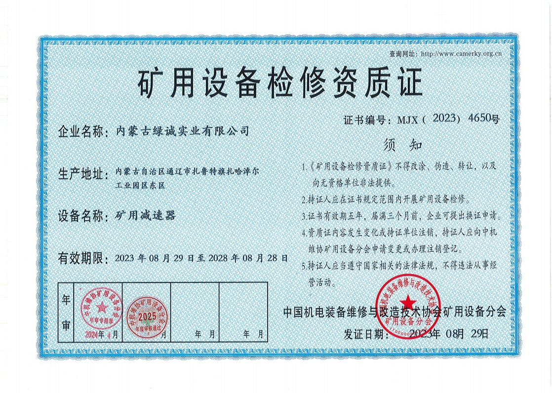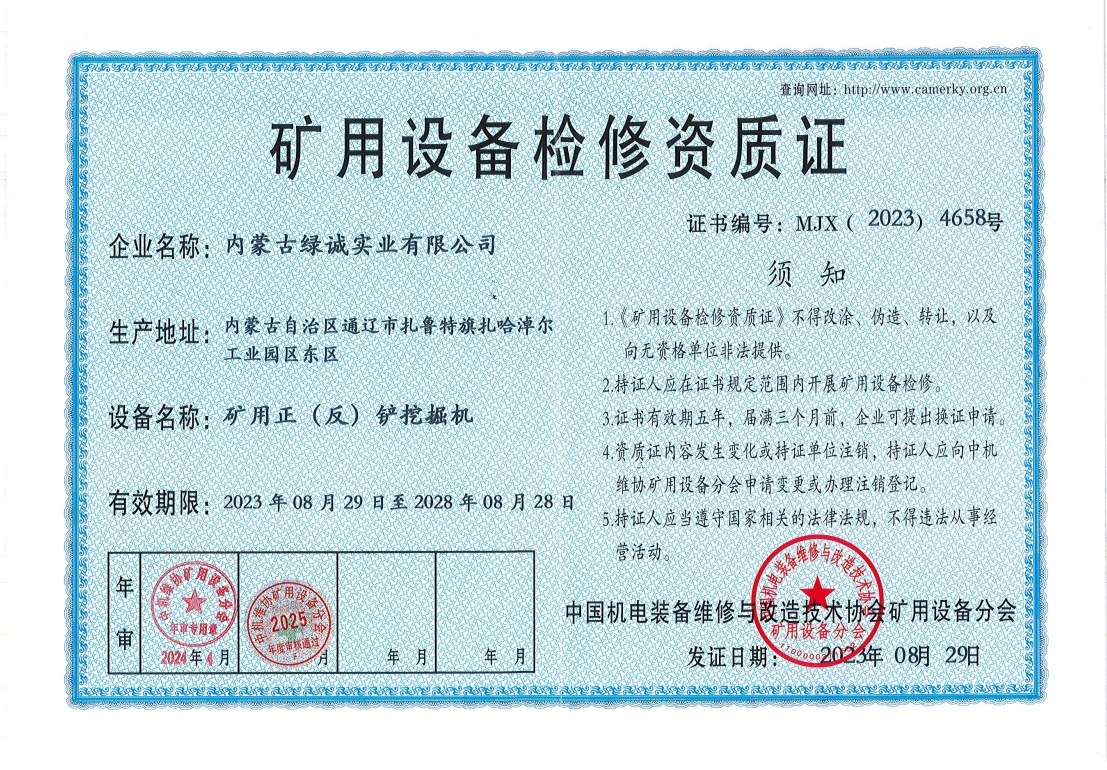 2018年我公司通過(guò)中國(guó)機(jī)電裝備維修與改造技術(shù)協(xié)會(huì)礦用設(shè)備分會(huì)審核并取得了9項(xiàng)礦用設(shè)備檢修資質(zhì)證書(shū)。公司本著“誠(chéng)信為本 質(zhì)量為先 全心全意為客戶(hù) ”的服務(wù)理念,圓滿(mǎn)完成各個(gè)廠礦的機(jī)械維修及配套服務(wù),期待與您共同合作。